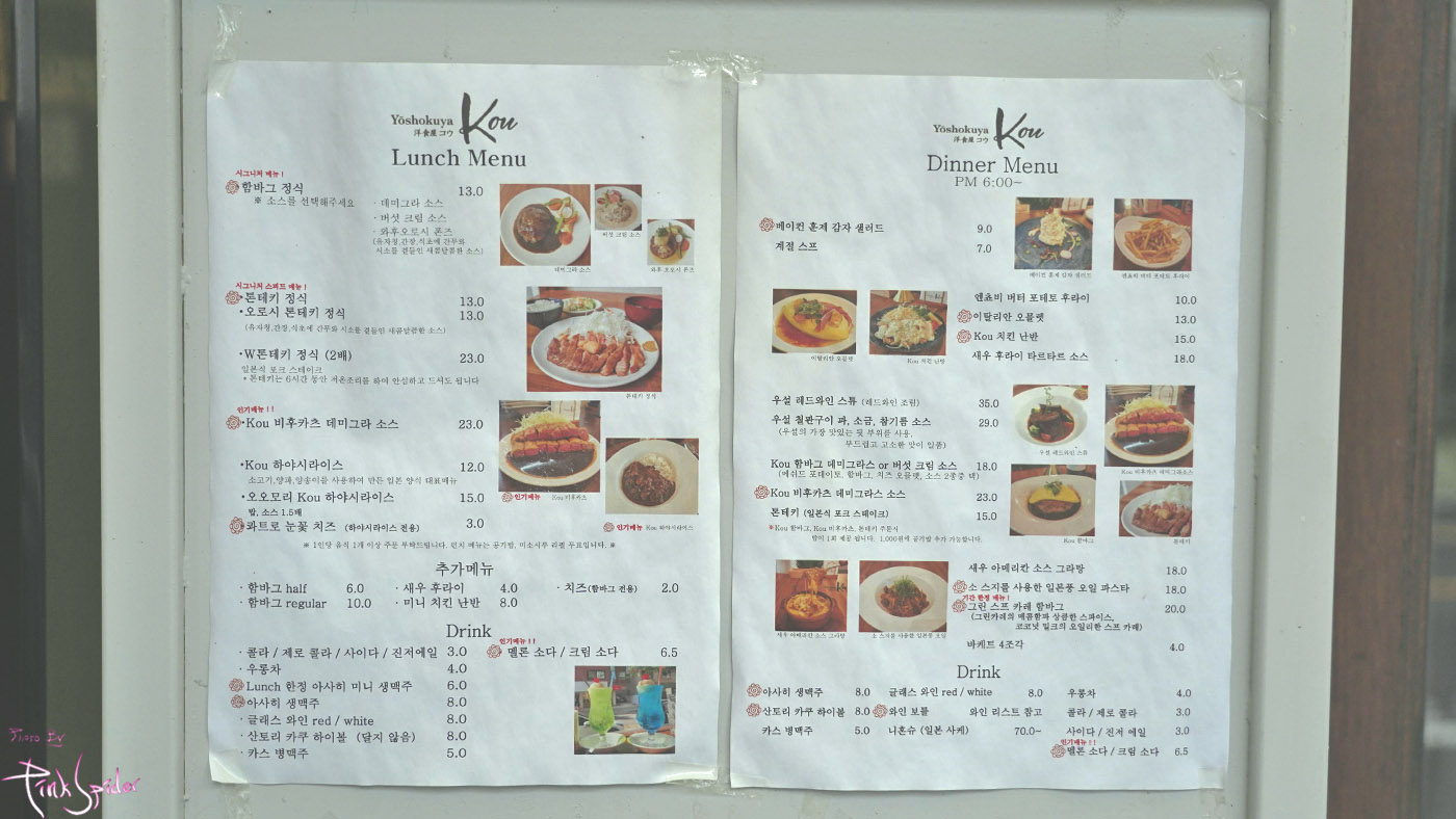 왼쪽이 런치고 오른쪽이 디너이니 미리 확인하는게 좋을 듯~