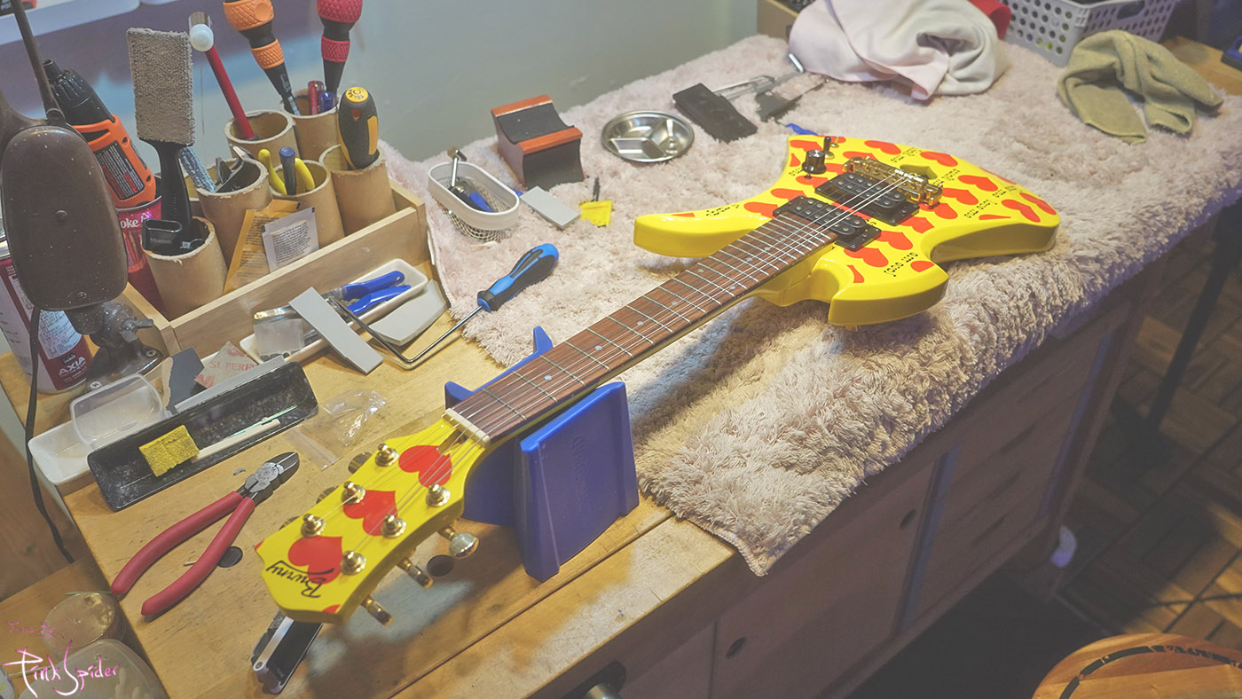 최근에 구입한 히데 시그네이쳐 버니 MG-Jr 옐로우 하트 미니 기타 클리닝이랑 점검 좀 받으려고