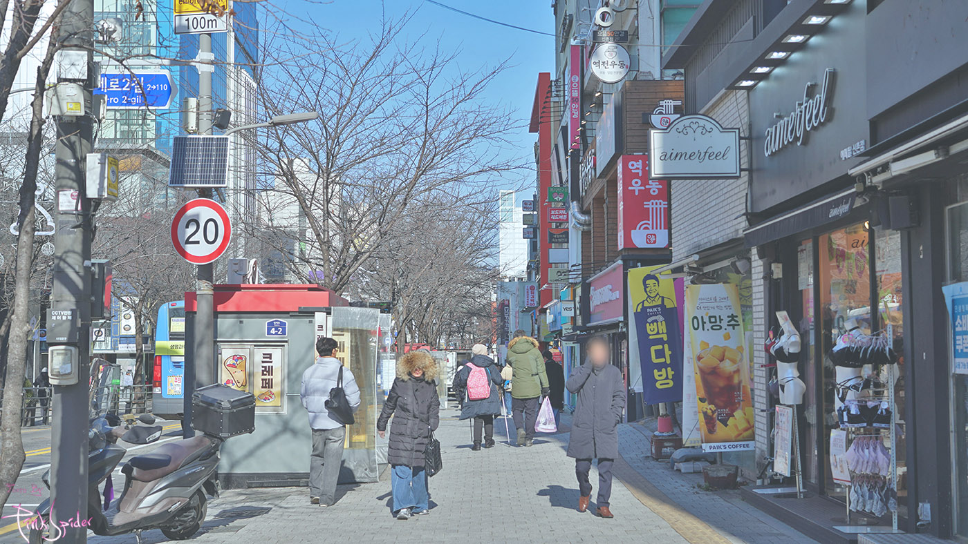 이제 정오가 되는 시간이어서 그런지 사람들인 많지 않은 신촌길
