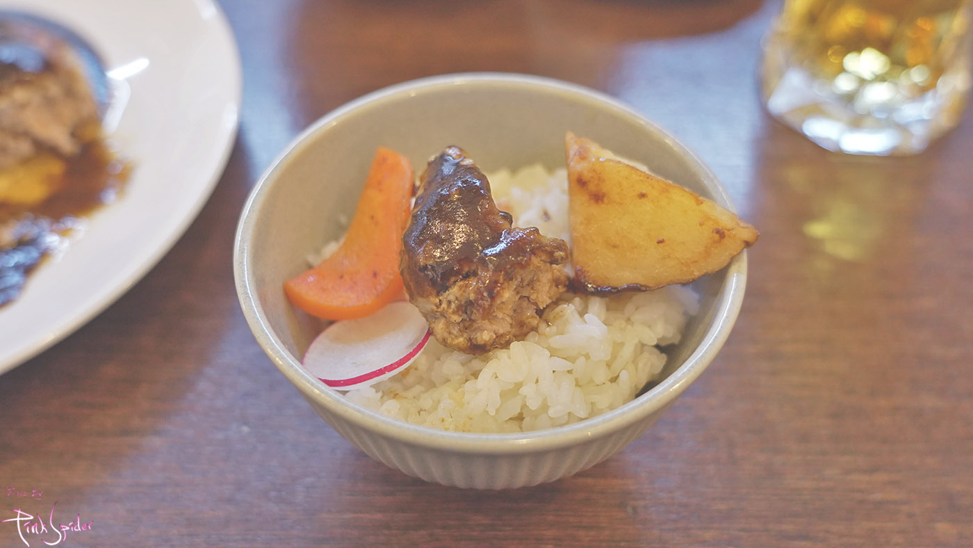 간이 살짝 은은하게 되어 있어서 그런지 데미그라스소스를 곁들여서 먹어야 뭔가 제대로 셋팅이 된 함바그의 느낌이다.