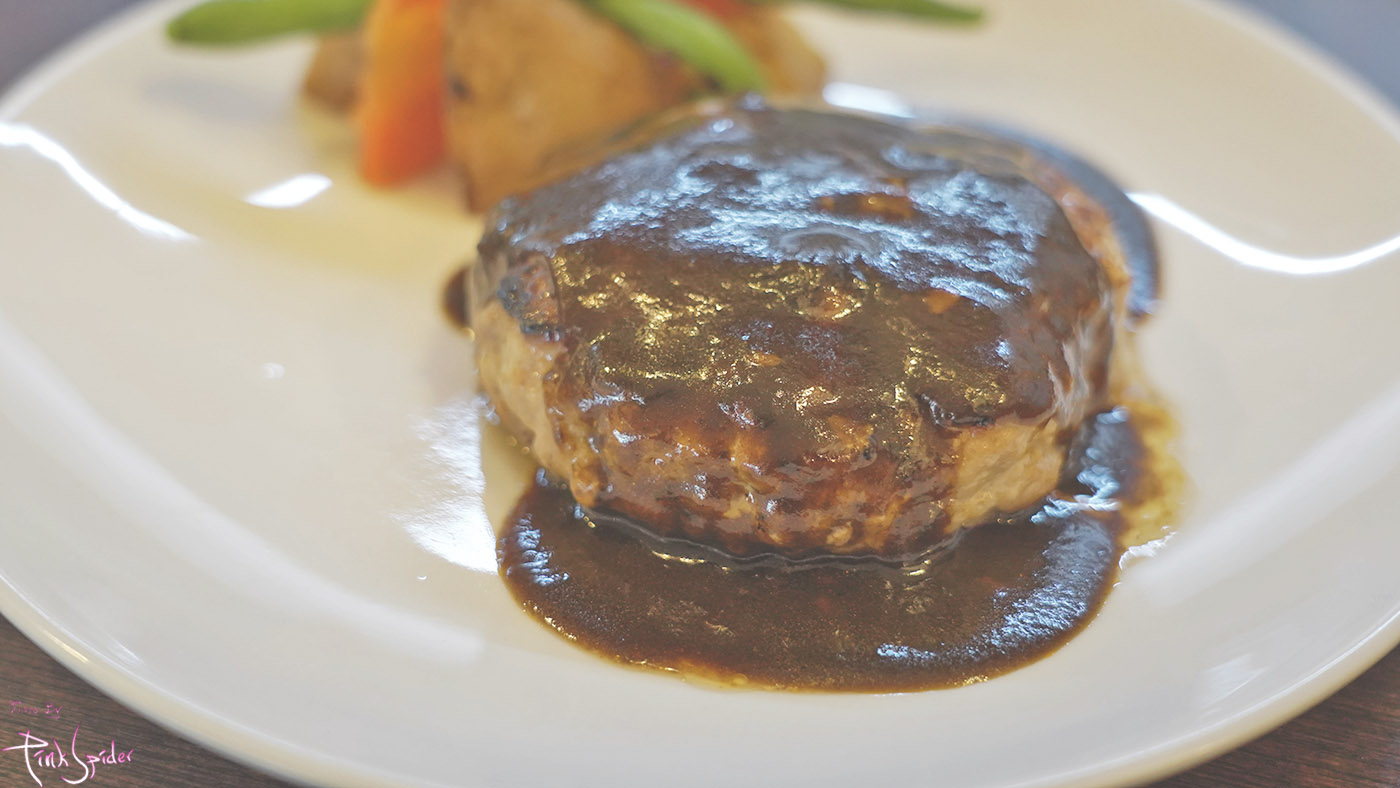 소스를 데미그라스 소스, 버섯 크림소스 그리고 와후오로시폰즈(和風おろしポン酢)를 곁들일 수 있는데