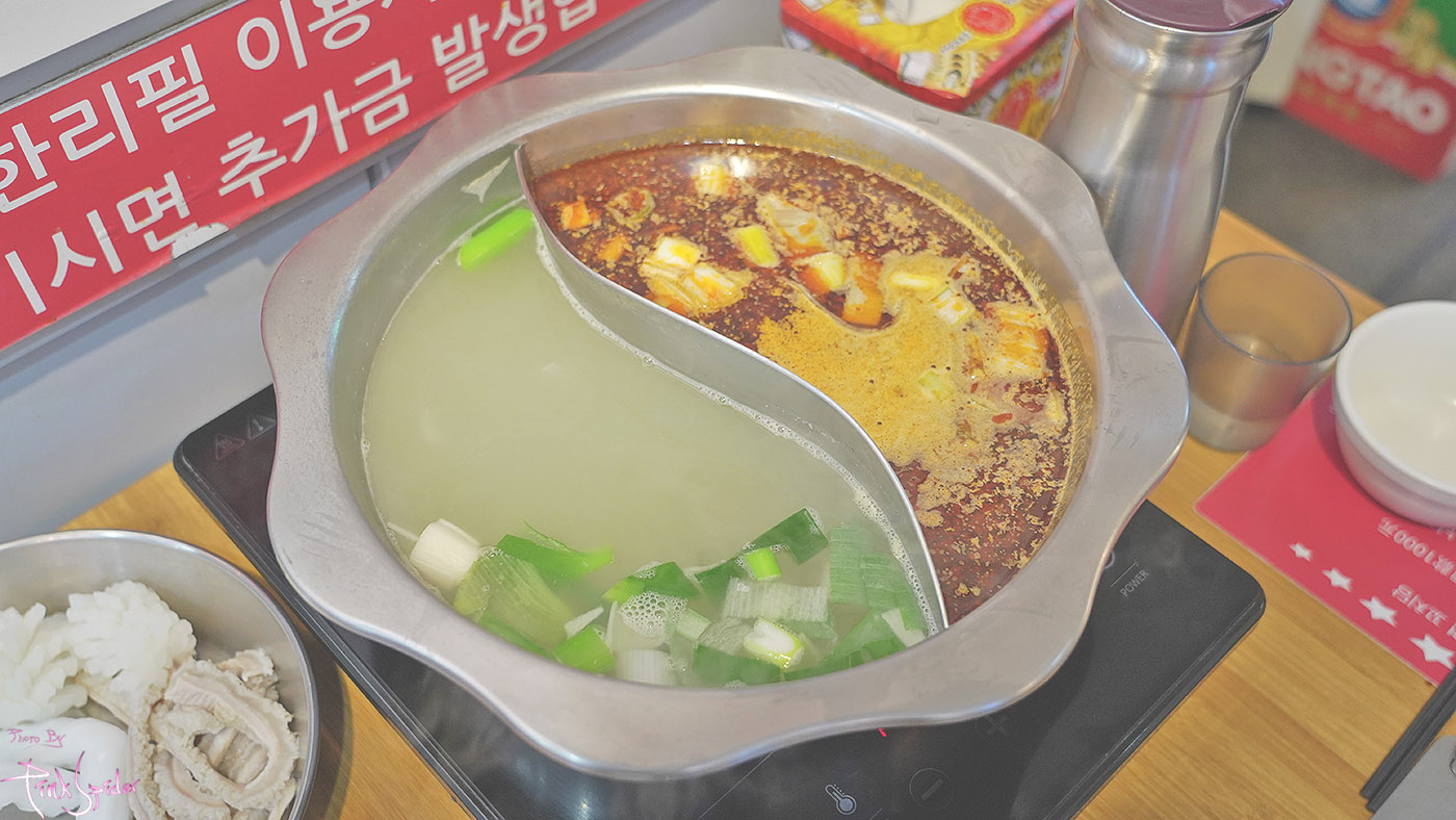 그 와중에 훠궈 백탕, 홍탕이 나왔다~