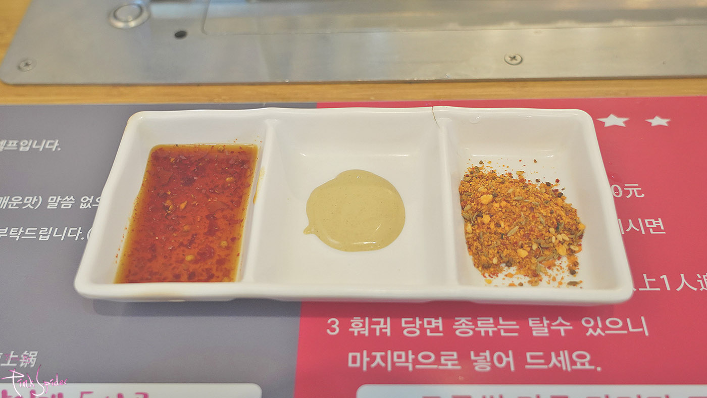 양념이 아쉽다면 테이블에 구비되어 있는 양념들을 잘 조합해서 곁들이면 아쉬울 것 없을 것 같았고