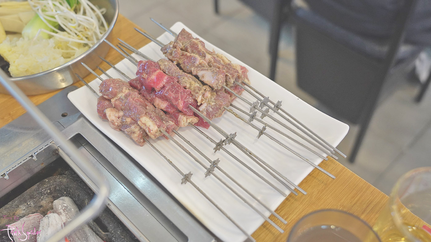 이 때까지 양꼬치는 가지고 오질 않았었는데 테이블에 숯을 넣어주시면 그 때 가져와도 됨~