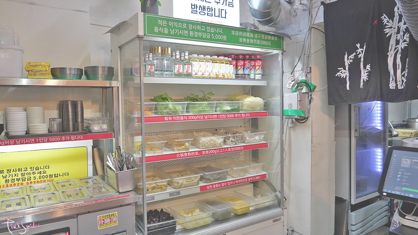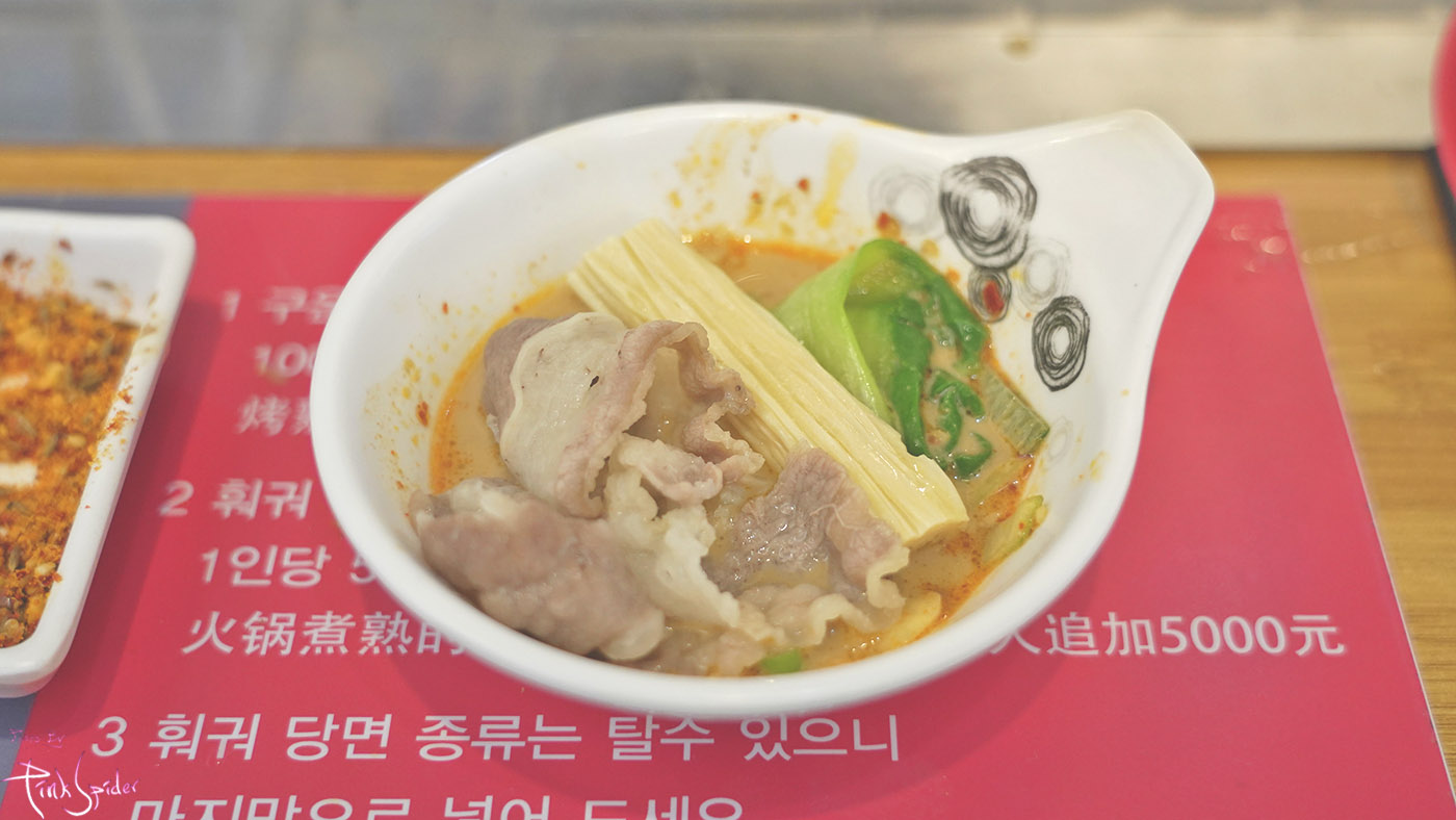 아! 훠궈에 넣는 고기는 따로 비치되어 있지 않기 때문에 따로 말하면 갖다 주심