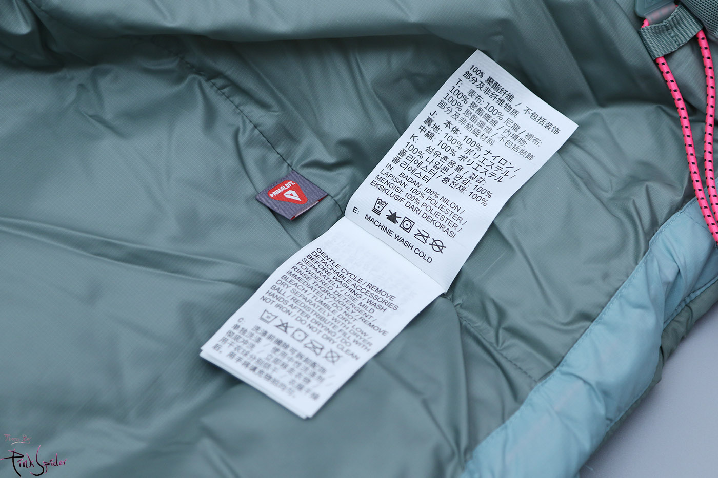 오른쪽 팔 안쪽에 프리마로프트 로고도 자수로 새겨져 있고