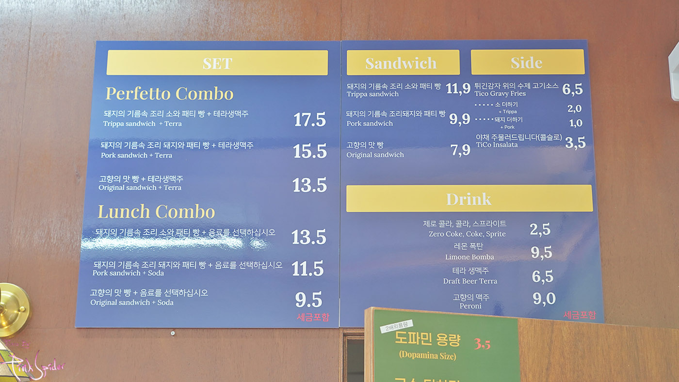 내장만 들어간 오리지널 샌드위치에 콤보로 주문하고 소고기가 들어간 트리파 샌드위치에