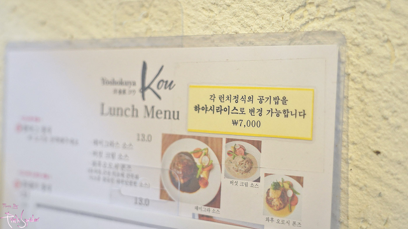 요쇼쿠야 코우는 런치와 디너 메뉴가 살짝 다르다.