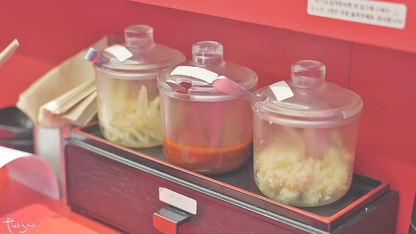 다른 한편에는 초생강, 두반장같은 살짝 매콤한 소스 그리고 다진 마늘이 있어서