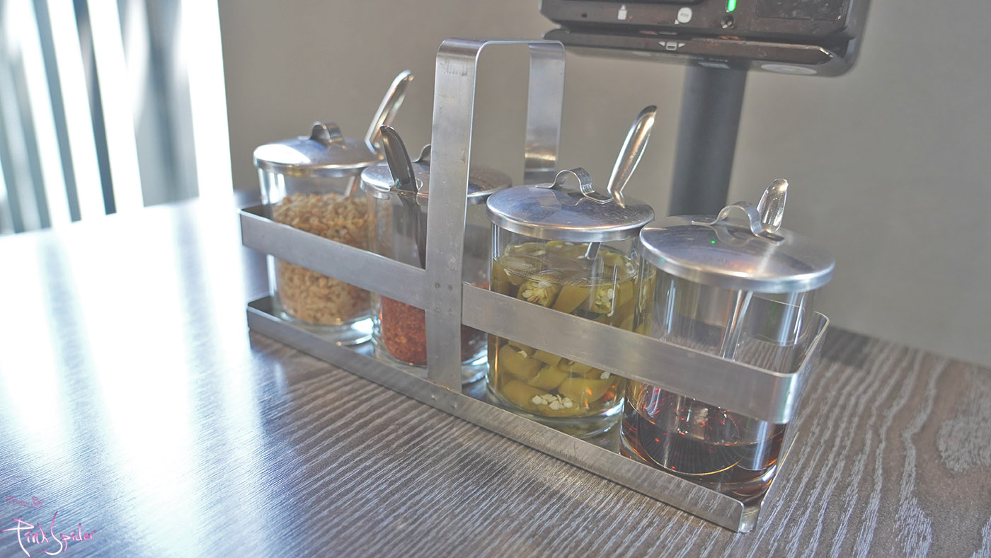 그리고 테이블마다 이렇게 소스가 놓여져 있었는데