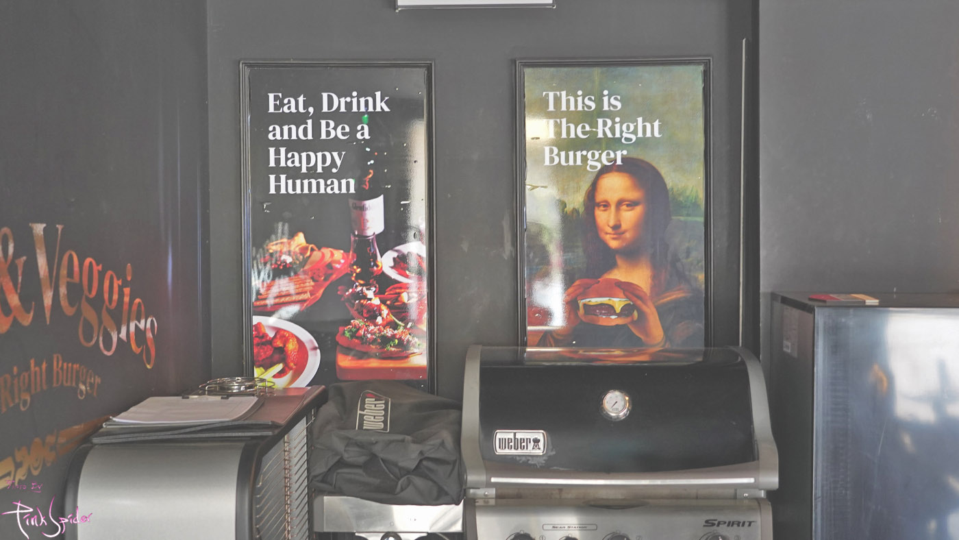 문을 열고 들어서면 모나리자가 온화한 표정으로 햄버거를 들고 있는 포스터가 재밌다~