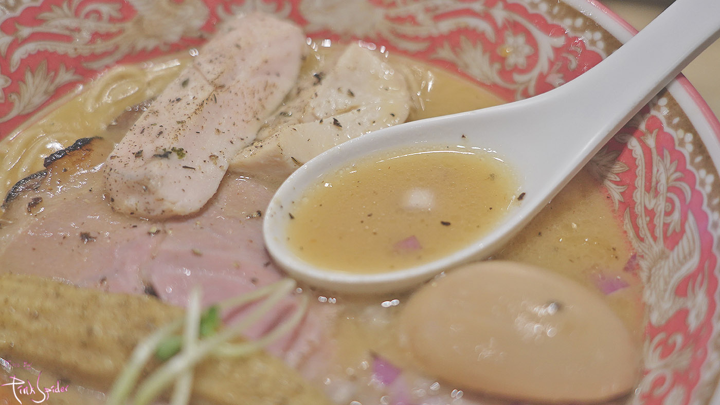 얇은 햄같은 고기향이 스쳐지나가는 목살 차슈, 순수하게 담백함을 자아내는 수비드한 닭고기