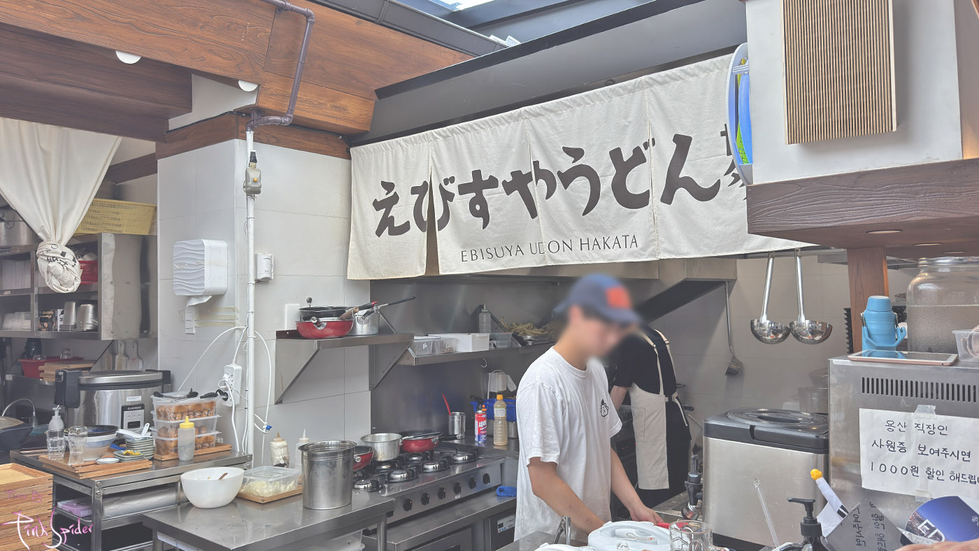 도착한 곳은 에비스야우동 하카타(えびすやうどん 博多)라는 문구가 확 들어온다.