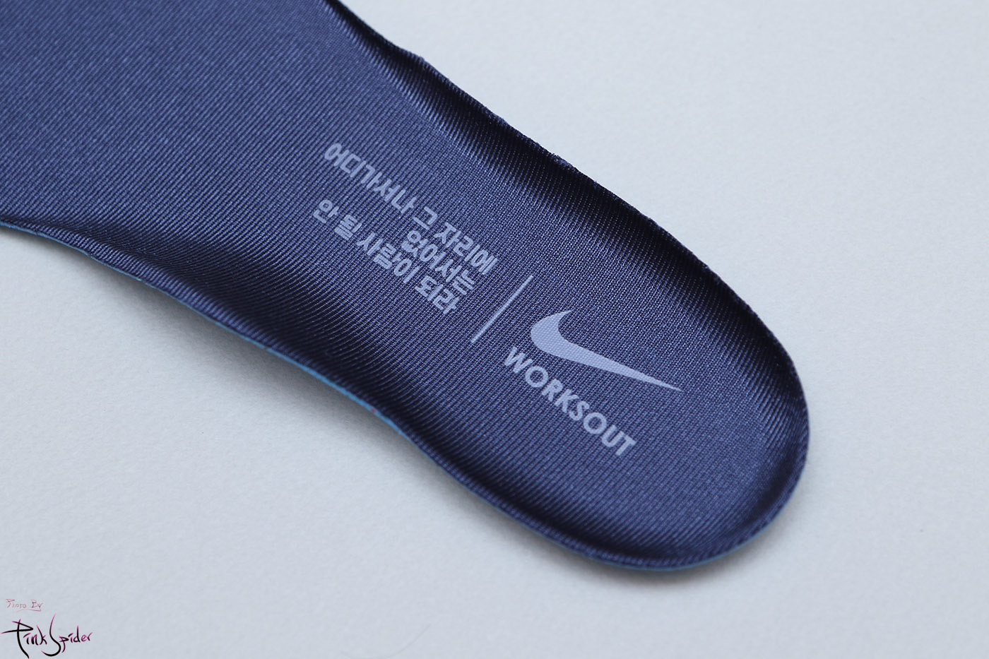 뒷축에는 나이키 로고, 웍스아웃 레터링 그리고 서울고등학교 내에 있는 문구가 새겨져 있고