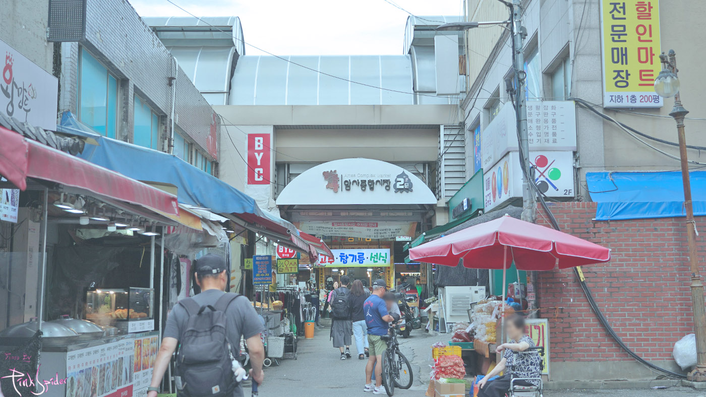 역에서 나와서 바로 암사종합시장 2문으로 들어섬