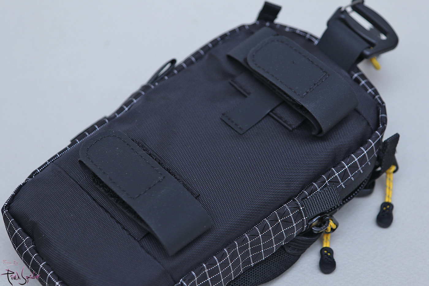 직접 가방에 달아보니까 상하단 두개의 이중구조 밸크로만 사용해도 잘 버텨주더라.