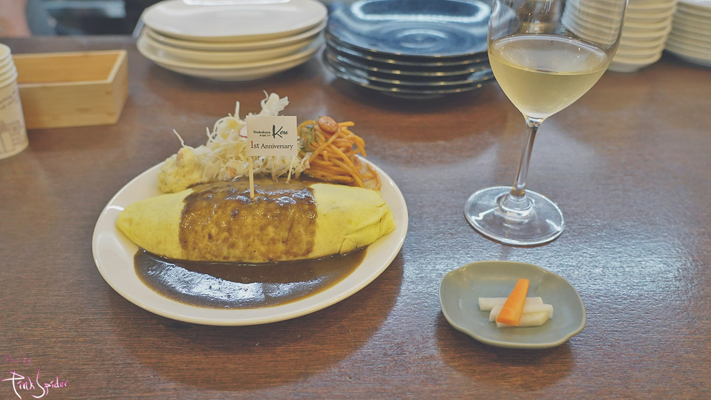 오므라이스 위에 이렇게 요쇼쿠야 코우 1주년 기념 깃발도 올려져 있고