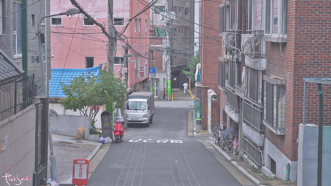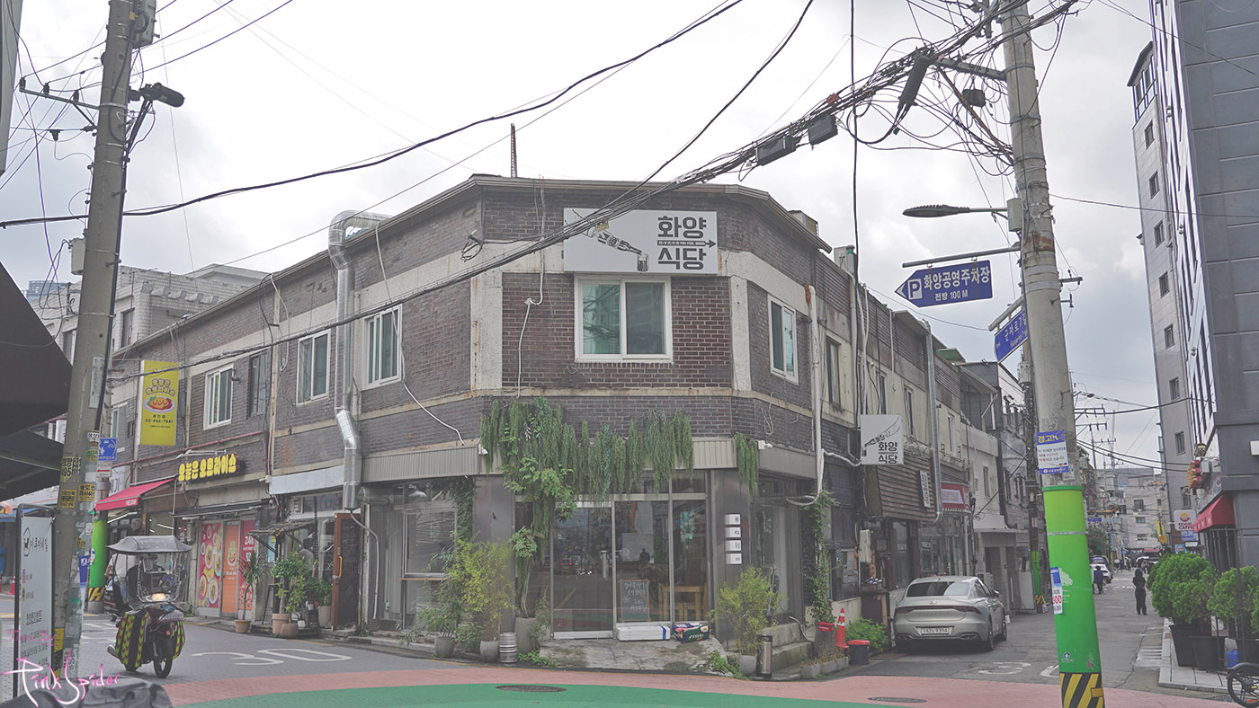 2층 건물 위에 슬쩍 간판이 보인다.