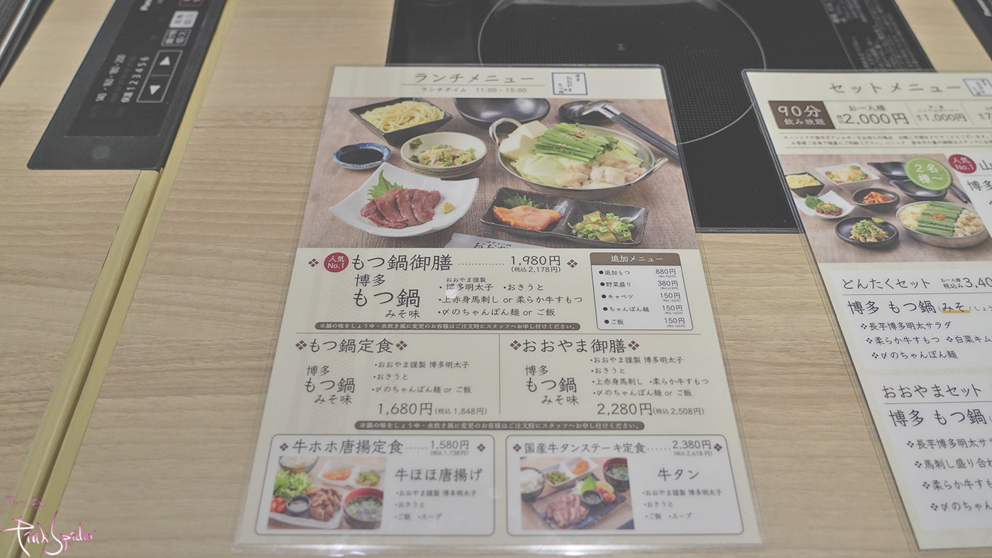 가장 인기가 많은 1,980엔인 모츠나베 오젠(もつ鍋御膳, 대충 모츠나베 한상이라는 의미)을 주문