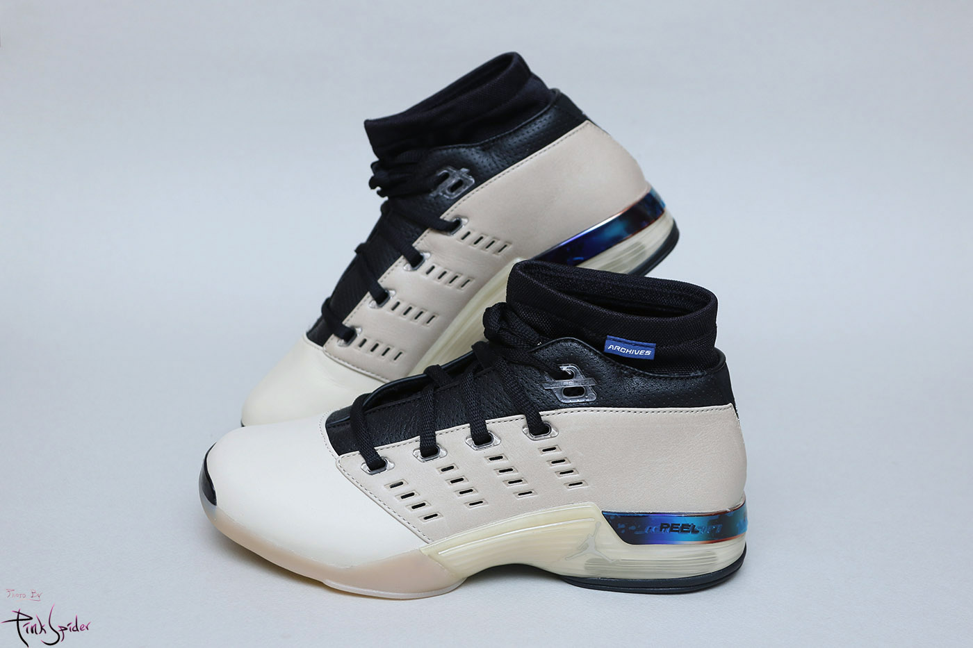 블루탭으로 양쪽에 jordan 그리고 archives이 새겨져 있는 것도 기존 조던17 로우와 다른 점