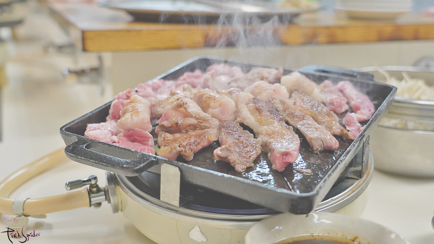 일단 센스가 좋은게 고기를 뒷편에 두고 숙주나물을 앞에 높게 쌓아주기 때문에 그나마 괜찮은 편~