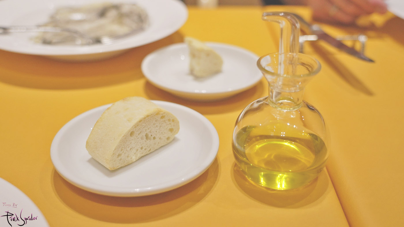 그리고 순백의 빵이 나왔는데 올리브랑 곁들여서 먹는 식전빵 같은 느낌이었는데