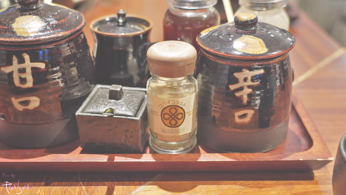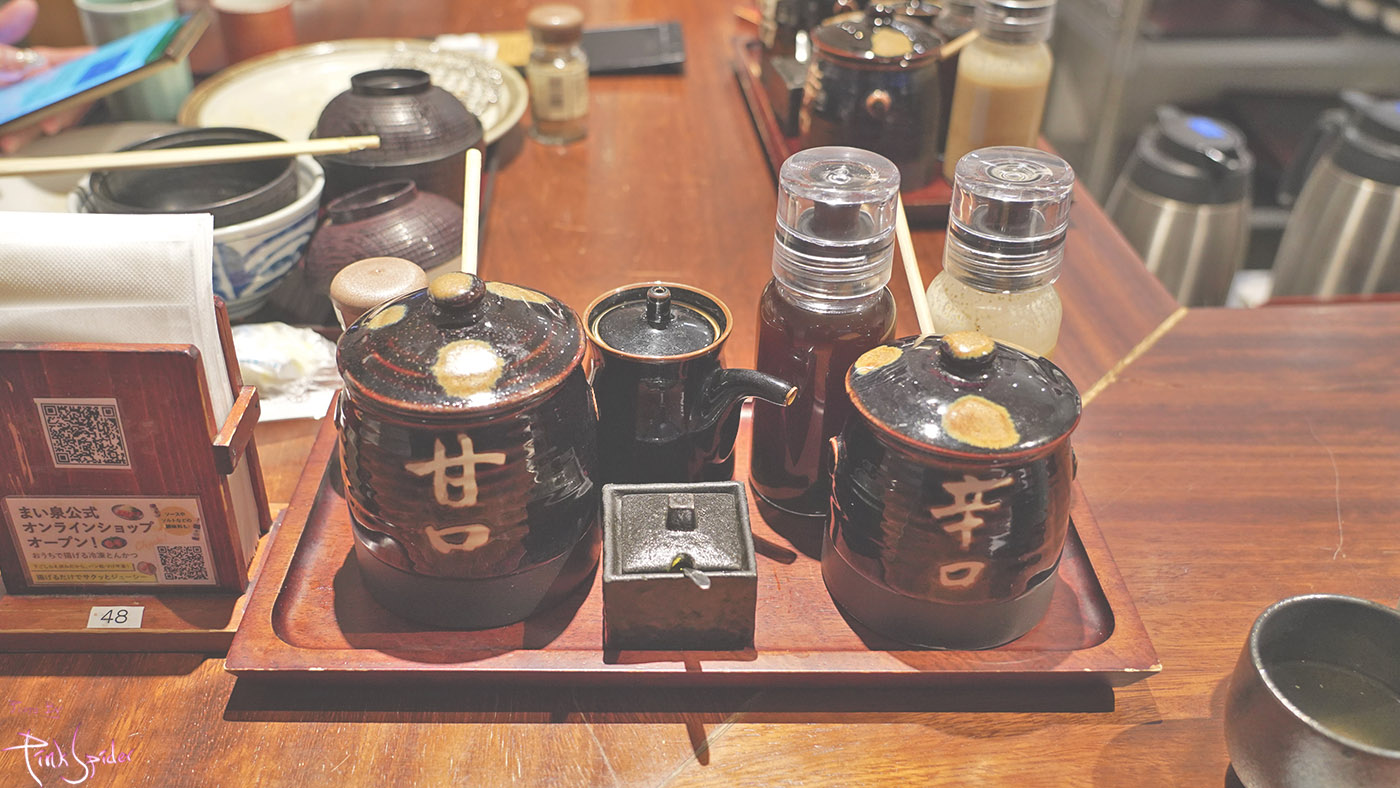 달달한 돈카츠소스, 매운 돈카츠소스, 와사비, 간장, 드레싱용 간장과 고마드레싱 이렇게 있었던 것 같다.